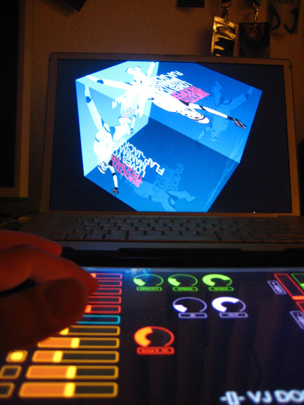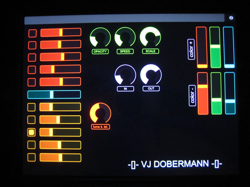 Contrôleur midi personnalisé sur ipad, avec ToucheOSC, TouchOSC Editor et Quartz Composer. L’avantage est que le signal midi passe par wifi en créant un VPN (réseau privé virtuel), il suffit de récupérer le signal via « l’utilitaire de configuration audio et midi ». Ne pas oublier de définir le numéro de chaque contrôleur dans TouchOSC Editor
